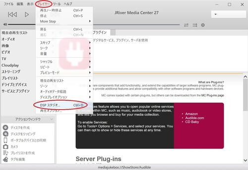 添付画像に従い Dirac Live Processor を JRiver Media Center のプラグインとして組み込んで下さい.次にJRiver Media Center でスピーカーから音が出ることを確認し,Dirac Liveで室内音響測定に移ります